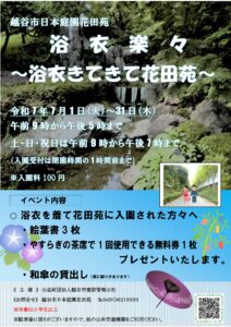 チラシ浴衣楽々 | 越谷市日本庭園花田苑越谷市日本庭園花田苑