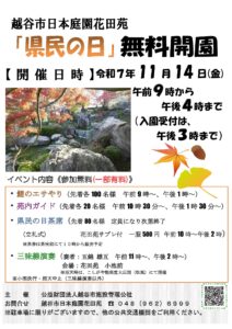 無料開園ポスター(県民の日) | 越谷市日本庭園花田苑越谷市日本庭園花田苑